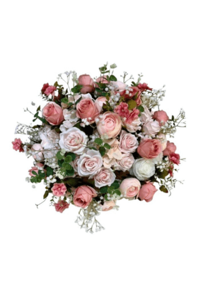 Type de fleurs : gypsophile, hortensia, roses
